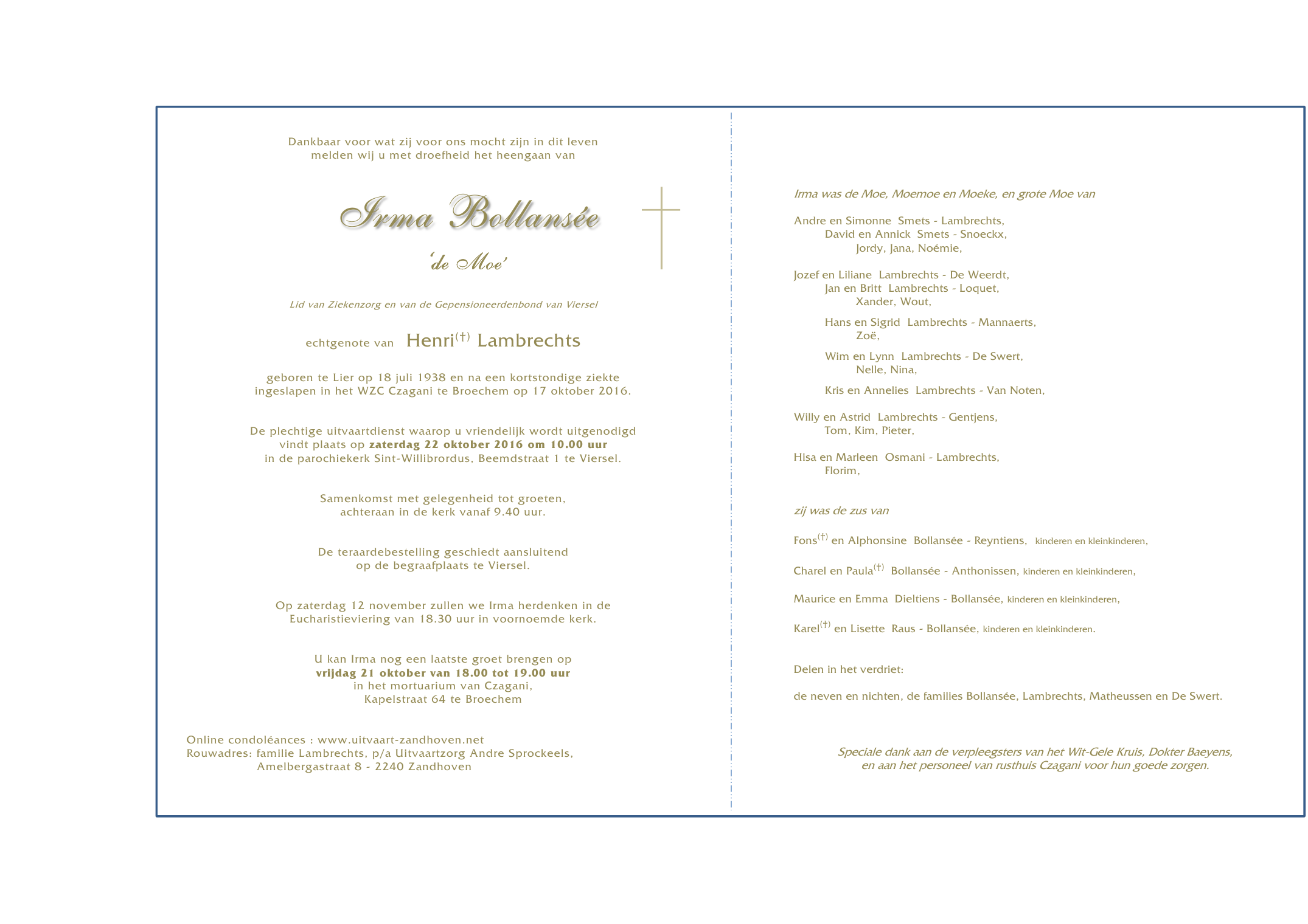 Overleden te Broechem (2520) op maandag 17 oktober 2016 op 78-jarige leeftijd