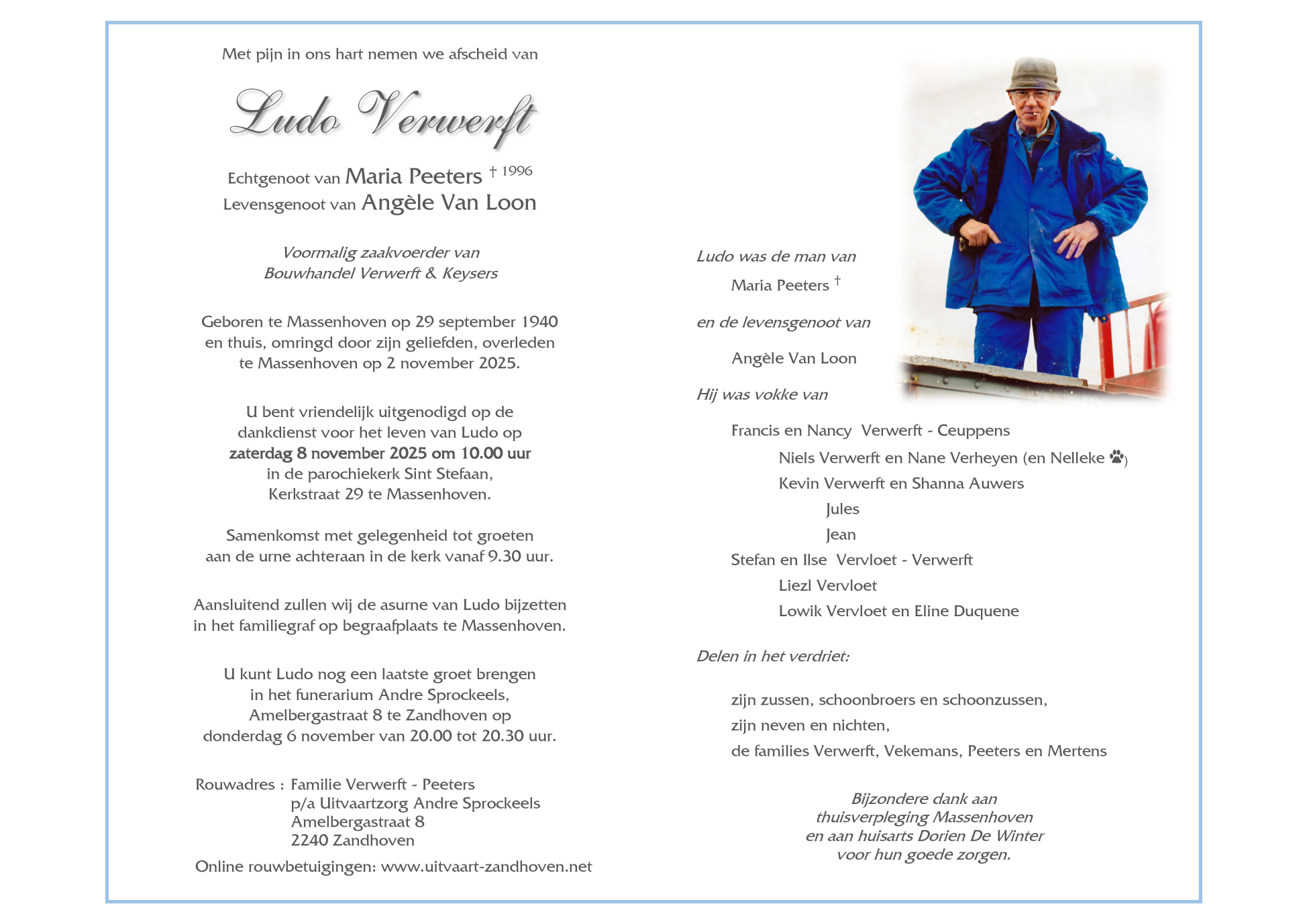 Overleden te Massenhoven (2240) op zondag 2 november 2025 op 85-jarige leeftijd