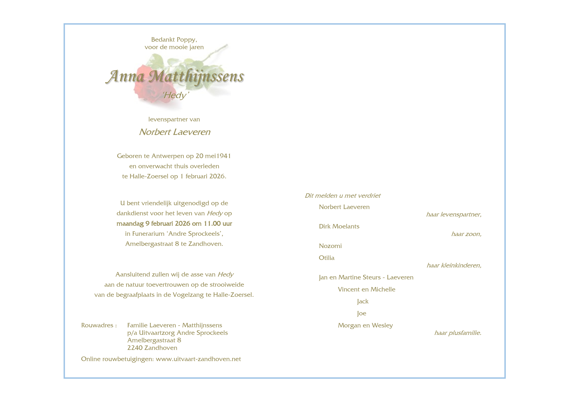 Overleden te Halle (Kempen) (2980) op zondag 1 februari 2026 op 84-jarige leeftijd