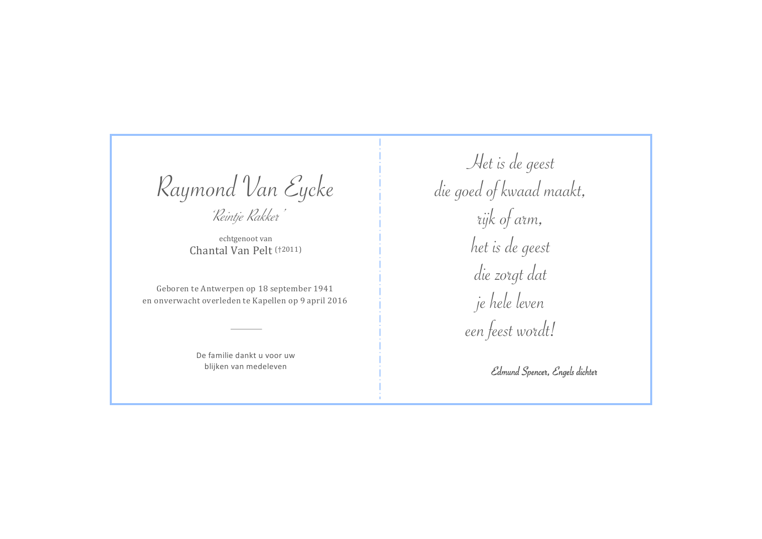 Weduwnaar van Mevrouw Chantal Van Pelt